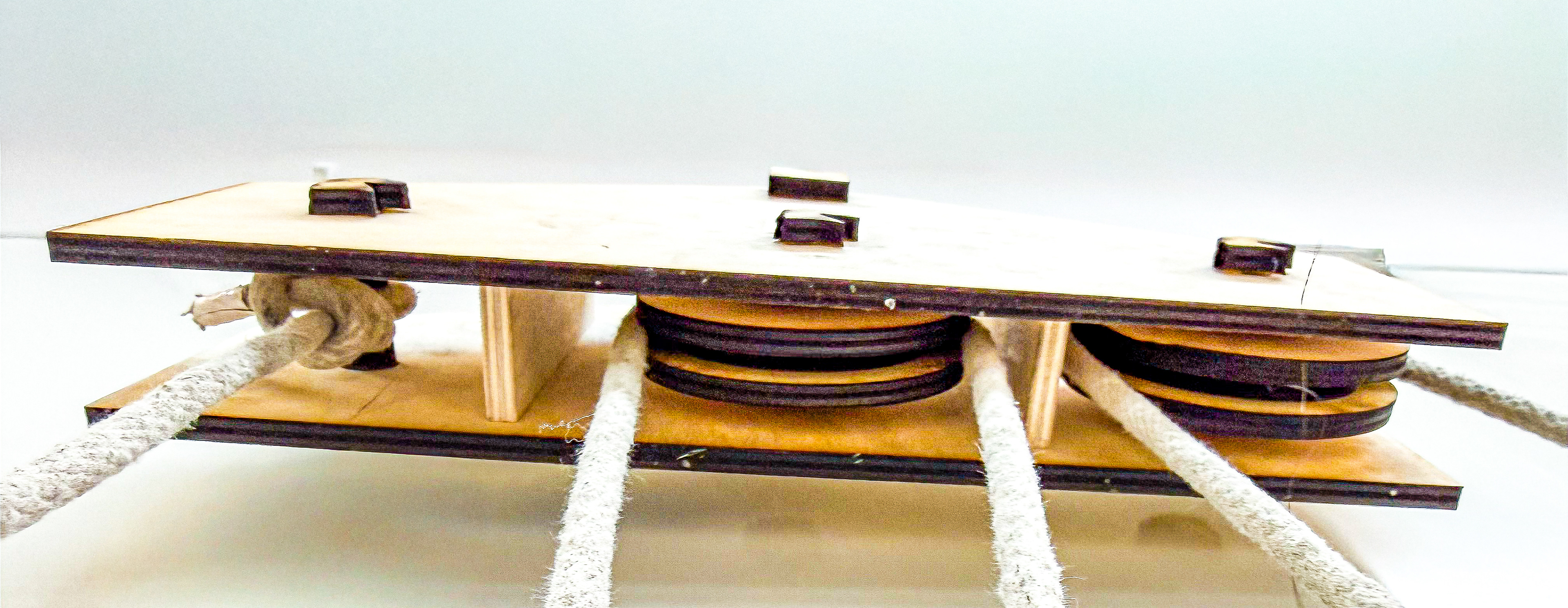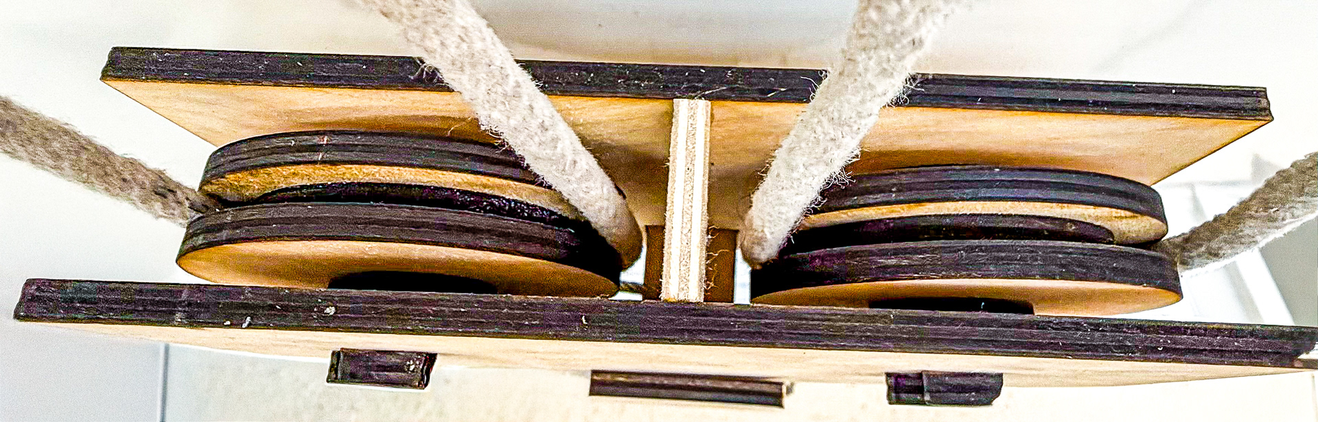 Spring 2026, EED 111 Assignment (5.75 hrs): - 4:1 - lift 60lb 3' in the air Material: - 30"x18" sheet of 1/4" plywood - 1/4” dowel Tools: - laser cutter - wood glue
